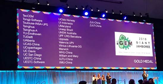 本次比赛共30支队伍获金奖,来自全球的343支参赛队伍参加角逐,其中中国大陆地区的参赛队伍总数已达75支。我校iGEM团队自2017年12月组队以来,得到了指导教师卢晓云、谭丹、孙书洪的悉心指导,生命学院、beat365正版唯一官网给予了大力支持,生命学院院长刘健康、副院长张建保在比赛倒计时阶段为团队提供了建设性指导。
