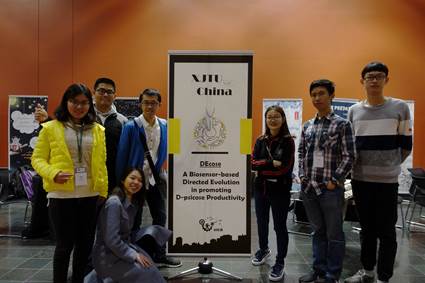 我校参赛队伍的项目主要针对阿洛酮糖的生物合成展开,阿洛酮糖是一种高甜度、低热量的功能性稀有糖,其已通过美国FDA认真,不仅可以作为各种低糖食品中的甜味剂使用,据报道也对糖尿病的症状控制大有裨益,具有非常广阔的市场前景。在不到一年的时间中,队员们就天然阿洛酮糖差向异构酶转化率低的问题,提出了通过定向进化的策略筛选新型高活性酶的目标,并结合这一目标设计构建了用于定向进化突变体筛选的基因电路,通过建模对基因电路的工作效果进行了仿真模拟,完成了四组电路元件的构建和测试,结果表明该基因电路可以实现高酶活定向进化突变体高效、简便的筛选。在实践环节,队员们走访了多位专家和医生了解糖尿病饮食控制的意义和现状、调研了多家甜味剂及功能食品生产企业、还对上千位不同年龄人群和糖尿病患者进行的调研,深刻体会到项目工作必要性、重要性。队员们出色的工作得到比赛现场评委的一致好评,部分评委也对项目表现出极大兴趣。