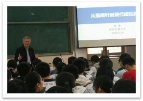 3月29日上午,西安交通大学授予山西省运城中学为优秀生源基地,授予仪式在运城中学隆重召开,beat365正版唯一官网常务副院长、博士生导师杨森教授出席本次活动。杨森教授充分肯定了运城中学的教学工作,感谢运城中学为交大输送了优秀的学生,希望两校在后续的工作中进一步加强合作,共同推动教育教学改革,培养更多优秀人才,同时杨森教授被聘请为运城中学客座教授。授予仪式后,杨森教授应邀为山西省运城中学、东康中学、康杰中学分别做了三场以《从指南针到现代磁性材料》为题的精彩科普报告。