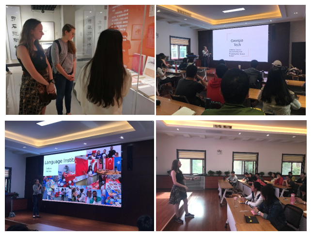5月8日下午2点,两位来访外籍学生代表参观了交大博物馆,在英文讲解员的介绍下接触了解交大百廿年的悠久发展历程、深厚的文化积淀。随后,外籍学生代表来到数学楼2-1会议室,进行佐治亚理工学院本科国际交流项目宣讲。Grace Harper从校园生活方面为同学们展示了佐治亚理工学院的食宿生活,校园文化,鼓励同学们在佐治亚理工学院学习交流期间除了完成课程学习,还要多与同学与导师交往,积极主动参与科研训练,同时也能更好地体验美国文化生活。佐治亚理工学院数学专业大三学生Courtenay Morse则重点介绍了佐治亚理工学院数学专业本科生的主要课程,重点展示了图论、数论基础、拓扑学等课程教学的涵盖内容,同时分享了佐治亚理工学院独特的独立阅读课及交流项目中对英语课的要求。