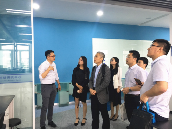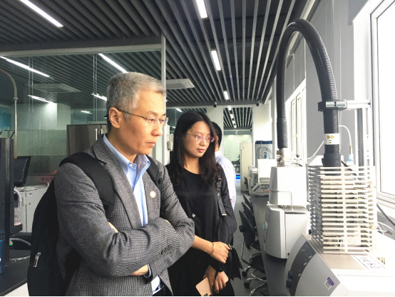 调研团一行参观了致远创新研究中心。该中心倡导学生去关注、关心、关爱人类(福祉),用科学方法去解决人类生存与社会发展的瓶颈问题,构建能源材料、量子通信与计算、生物分子探测、数据科学与技术四个平台,提供给学生开展多学科交叉科学研究,让学生在大一入校之初,即有机会接触最先进的设备,感受顶级科学的魅力,激发学生探索科学高峰的兴趣和勇气。夏伟梁副院长详细介绍了该中心的建设目标、筹建过程、组织运行,带领调研团体验了实验设备。
