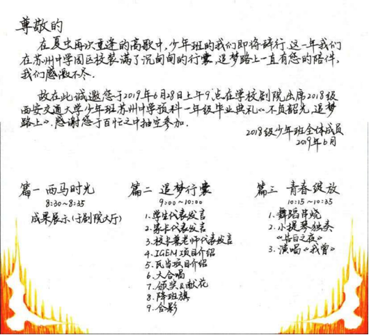6月28号上午,西安交通大学苏州中学预科一年级少科班在我校剧院举行了毕业典礼。从四点开始,就有同学早早地前往剧院参加排练,六点以后家长们也陆陆续续前往。从邀请函制作、舞台彩排、串词创作,到出席者联系、流程安排、成果展示,整个毕业典礼由少年们全权负责,而且这是他们在园区校一学年的学习生活中最后一笔浓墨重彩的句号。