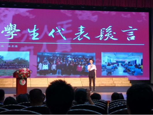 毕业典礼第一部分是“诉衷情”。首先的环节是学生代表发言。“学霸”徐海涛在舞台上清楚而透彻地总结了这一年来同学们的学习生活与收获,这是看似最无足轻重的一年,也是实质上最举足轻重的一年。留恋园区校的同时,大家也激情澎湃地踏上追梦的旅途,迎接新的故事与挑战。
