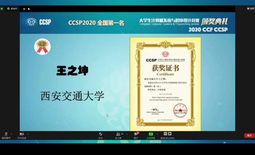 王之坤同学表示:“CCSP比赛最大特点就是题目比较长,选手们往往需要在短时间内学习和应用一些并不完全熟悉的知识并编写大量代码进行实现和优化。我觉得能够在CCSP2020取得好成绩,主要来自之前参加信息学竞赛和其他算法竞赛所带来的代码水平和稳定的心态。竞赛使我感受到计算机系统独有的魅力,这次获奖经历也勉励我要努力学习计算机系统知识,提高自己的知识水平。”