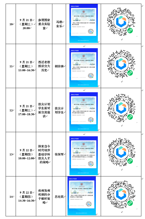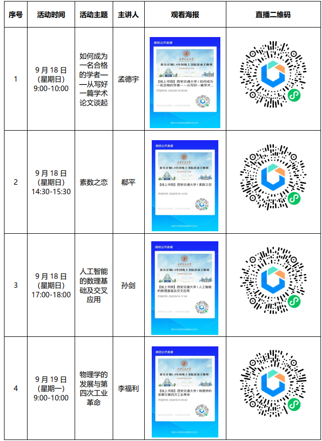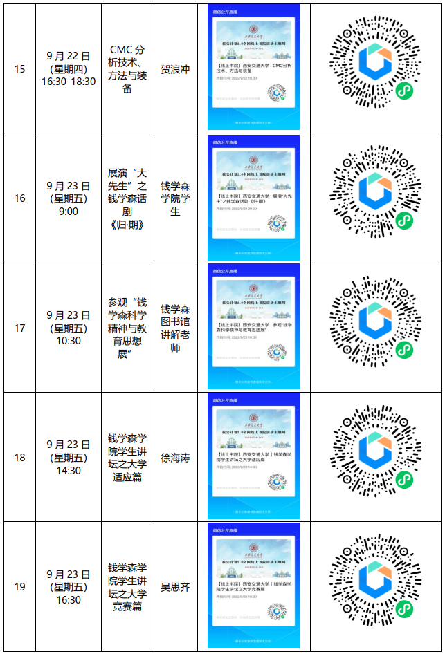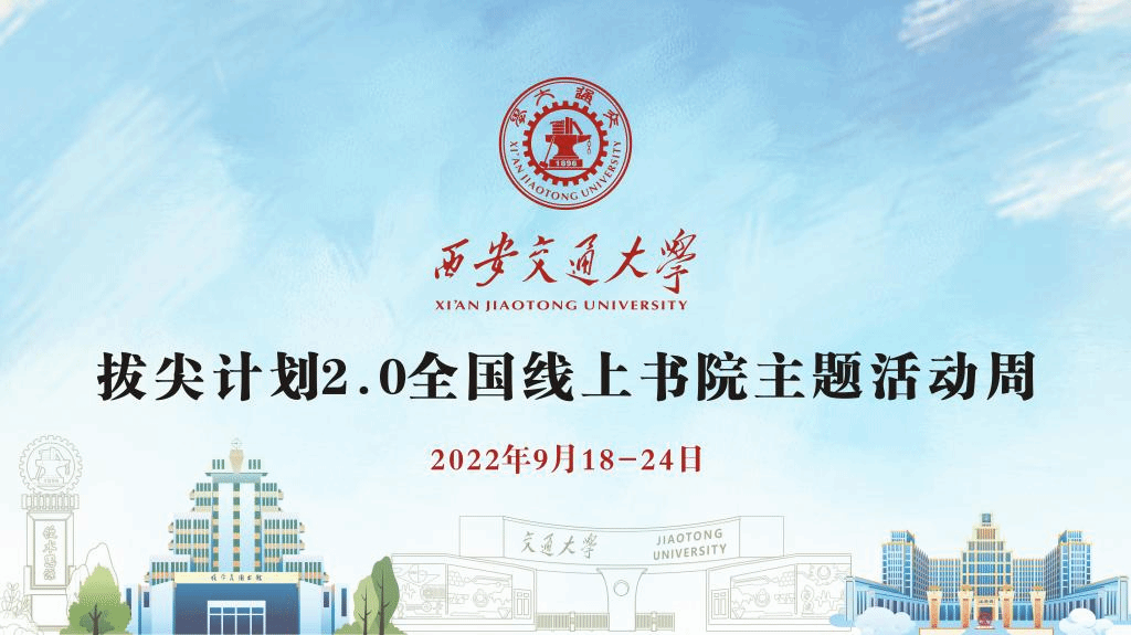 西安交通大学“拔尖计划2.0”线上书院主题活动周将于9月18日—9月24日启动,我校拔尖计划5个学科基地和钱学森学(书)院精心筹备了22场学术之道、名师讲坛、校友分享、朋辈分享、云端参观等内容丰富、形式多样的主题活动,欢迎大家扫码观看。