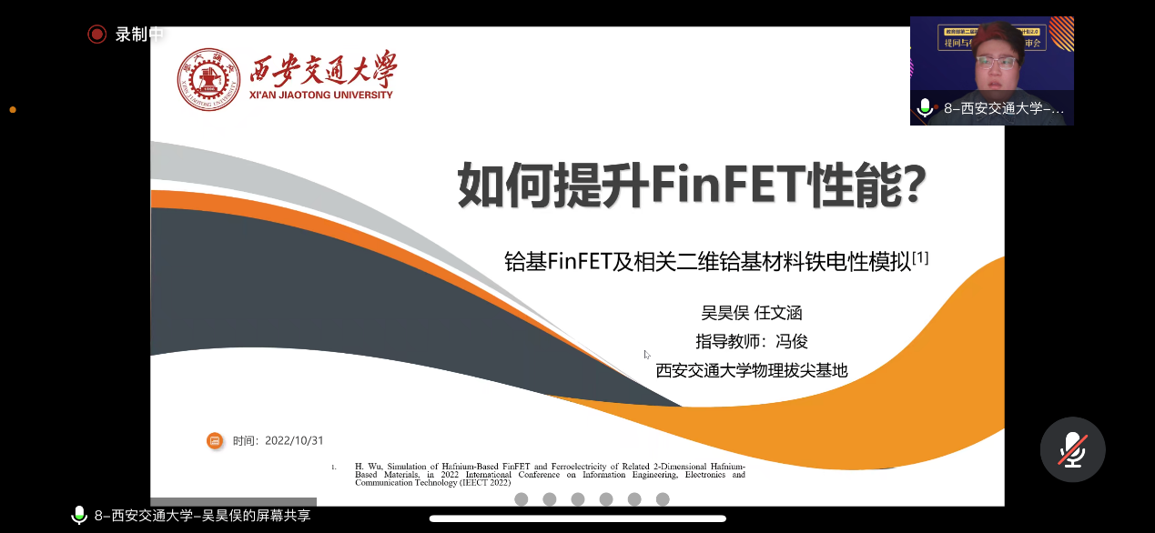 近日,由教育部高教司主办,拔尖计划2.0秘书组承办的第二届“提问与猜想”活动落幕。西安交大物理试验班大四学生吴昊俣、任文涵参赛的《铪基FinFET及相关二维铪基材料铁电性的模拟》项目荣获一等奖。