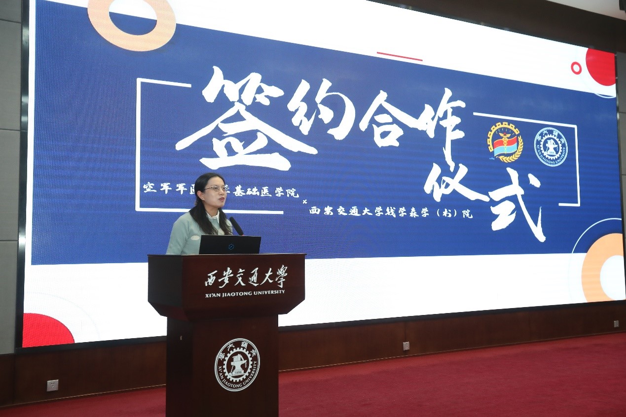 2月25日下午,西安交通大学钱学森学(书)院与空军军医大学基础医学院签订合作仪式在科学馆101报告厅举行。西安交通大学副校长席光、校长助理单智伟,教务处、学生处、团委、实践教学中心、生命学院、医学部、钱学森学(书)院等相关部门负责人,空军军医大学副校长王东光,教务处、基础医学院、教学科研处、学员大队领导出席仪式。beat365正版唯一官网副院长王娟主持活动。