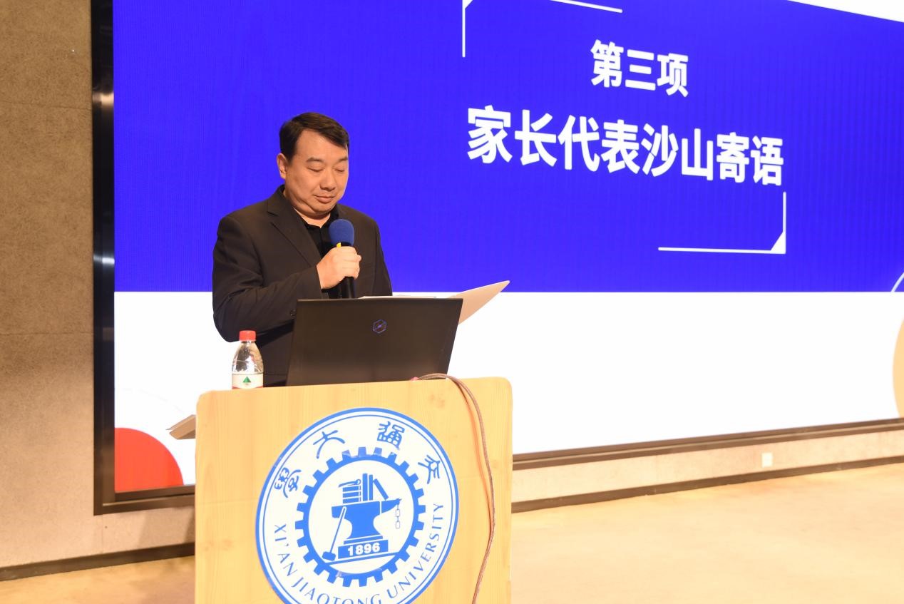 典礼邀请19级少年班两位同学的家长作现场发言。少年班93秦亦沙同学的父亲沙山先生首先寄语,其讲话情真意切,使各位同学备受鼓舞。“孩子们,你的样子就是中国的样子,你未来的样子就是中国未来的样子”。十八岁象征生理和法定上的成人,而真正的成人是心智和思想的成熟,这几乎是一生的事情。这个过程,是脱离父母羽翼庇护,是自己独自面对社会体会人生的过程,同样这个过程也是和父母渐行渐远的过程。“作为父母的我们虽有万般不舍,但我们仍会坚定不移的支持你们,把无尽的思念和不舍化作无限地期盼和祝福,默默地永不停息地为你们祝福,为你们加油!”