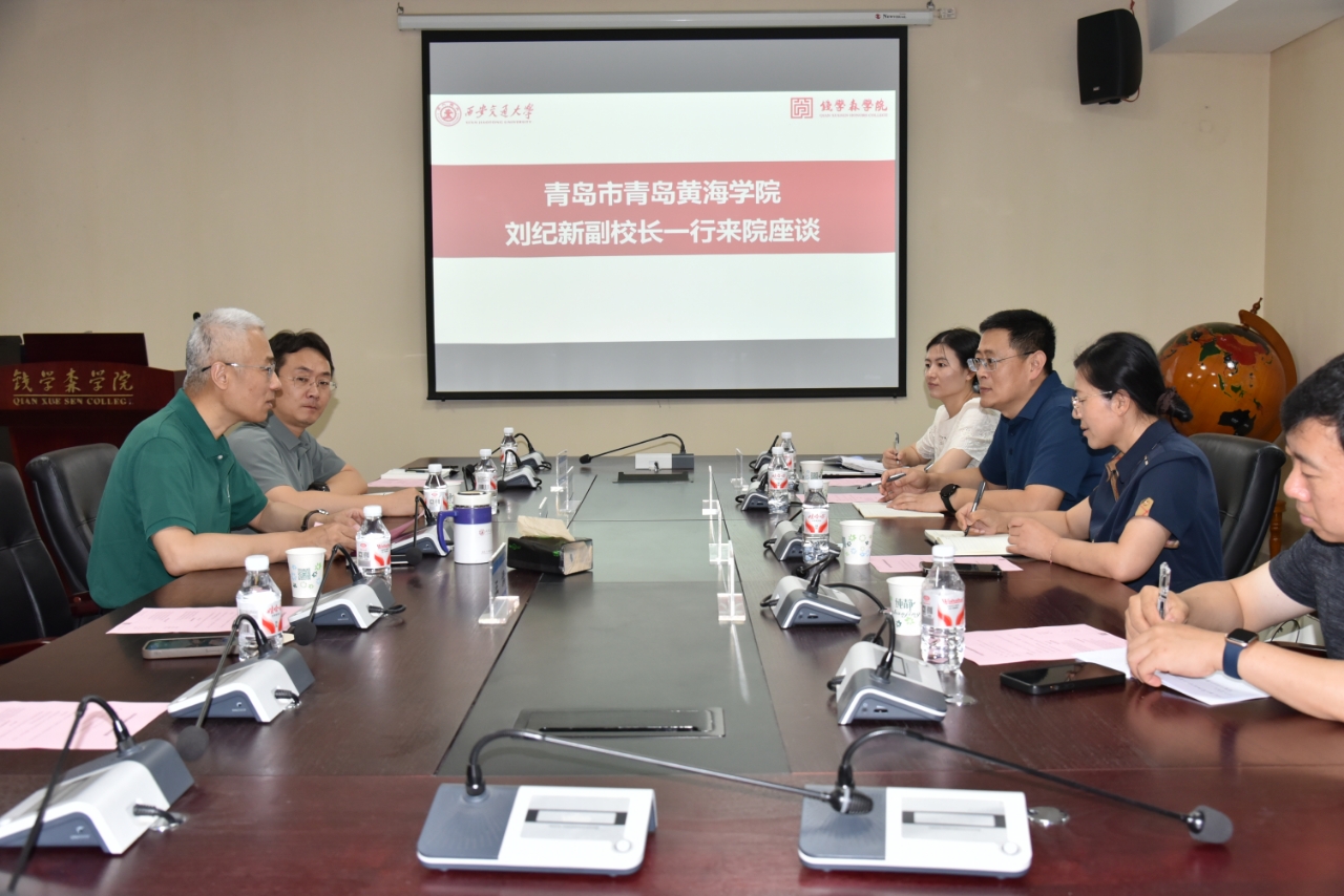 7月10日上午,青岛黄海学院刘纪新副校长一行4人来院座谈交流。beat365正版唯一官网常务副院长杨森、副院长王娟、书院院务主任田博及相关老师出席此次座谈会。