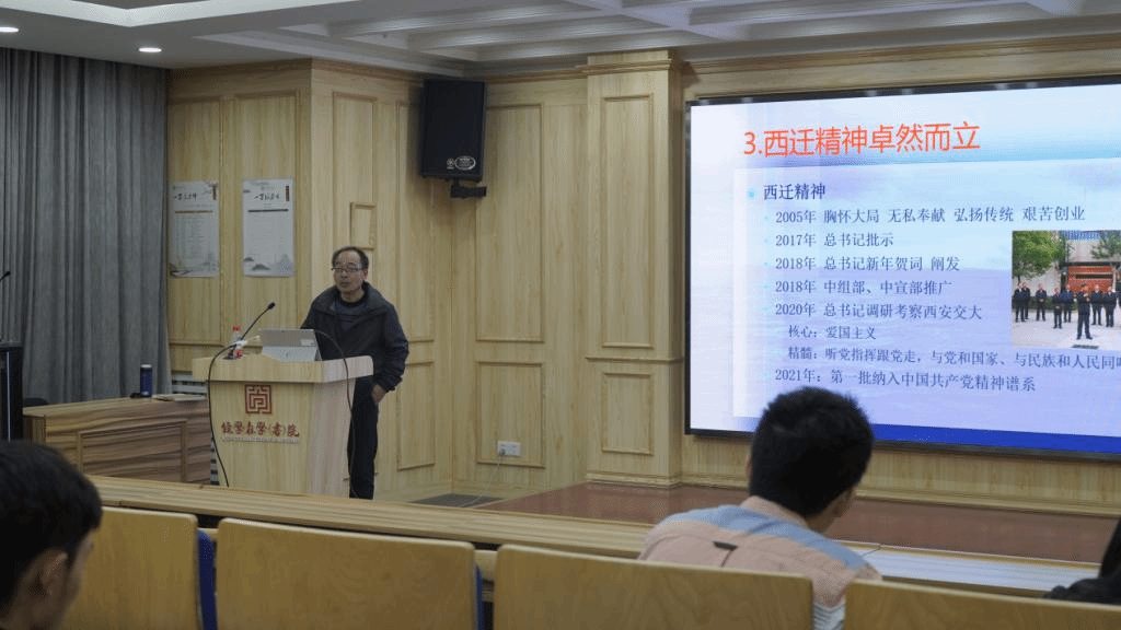 在讲述西迁精神卓然而立时,叶老师特别强调西迁精神是在2005年首次提出的,为什么选在2005呢?叶老师解释道:那时是西安交通大学建成110周年,整所学校不论是老师还是学生,都是一个全新的状态,我们应当将我们的西迁精神通过这样一种形式,传承下去,铭记心中,发扬实际。