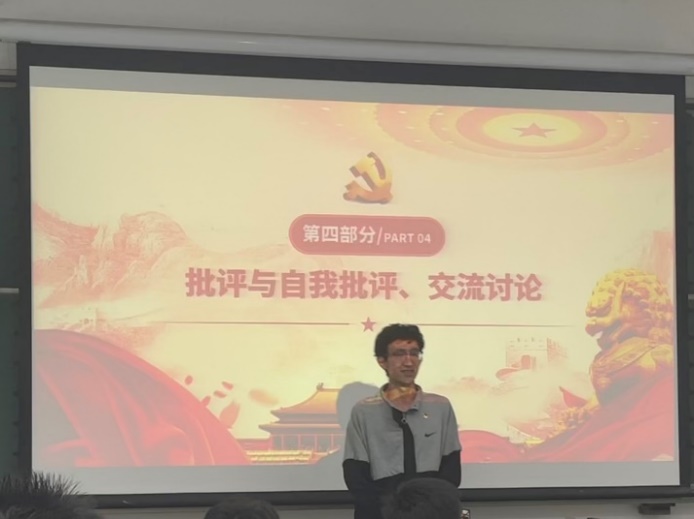 孙任君同志指出,自己和身边的部分同志存在着自我批评意识的缺失的问题,集中表现在批判性思维和辩证性思维的缺失上,体现在生活中对新消息、新知识反应思维迟钝中,即一味接受外界评价而缺少自己的独立思考。接着,她对刚刚结束的体质综合测试进行了反思,指出大多数同志在体质方面有了明显退步,而“身体是革命的本钱”,我们应当在日后的生活主动加强体育锻炼、提高身体素质。最后,她指出党员同志应当具有良好的精神面貌和较高的行动追求,党员在学习生活中更要不断激励自身,积极发挥模范带头作用。