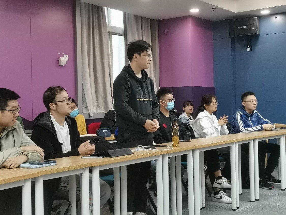 在交流讨论阶段,机械学院硕2001党支部张华清同志就保研竞赛等方面向在座学弟学妹分享交流了大学期间学习生活经验。张华清在分享中建议学弟学妹们在本科期间提早规划、勇于试错,培养“士别三日当刮目相待”的成长型思维,传承弘扬“胸怀大局,无私奉献,弘扬传统,艰苦创业”的西迁精神,做新时代西迁精神新传人。分享结束后,全场报以热烈掌声,张华清还就低年级同志的提问进行了答疑。