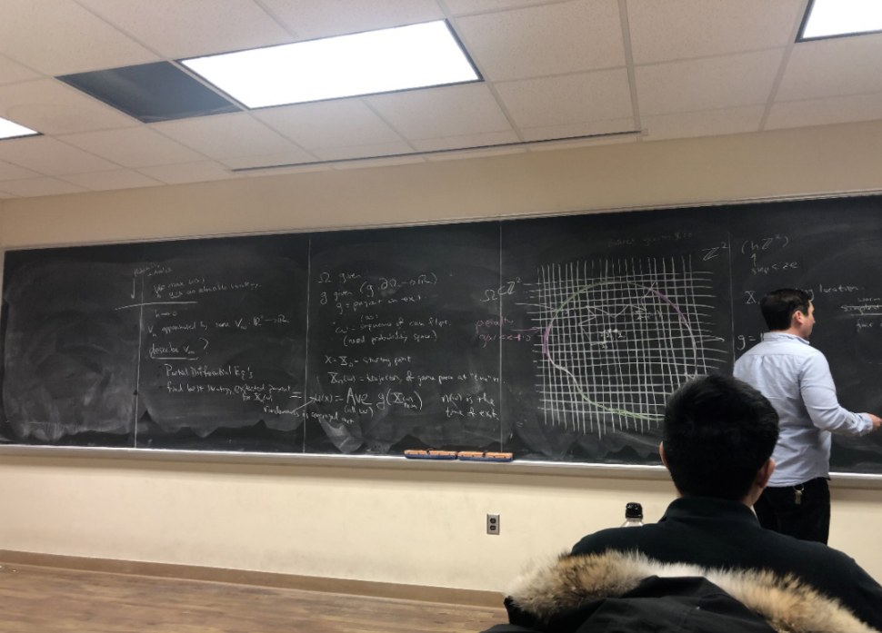 12月31日,我从上海飞到底特律,便开启了在MSU为期五个月的交流学习。经过几天的休整,我们即将正式开学,并已经选好了各自的课程。我总共选了三门课,分别为PDE、图论以及概率论,均为研究生课程。课程作业都由邮件发送,每次作业的量或许不多,但每道题都会有相应的难度。由于为研究生课程,课上人数都不多,只有十几个甚至几个人,相当于一个小班教学。而这边课上的氛围相对活跃,与国内的课堂不太相同,学生如果有什么疑问会马上提出来,而老师也会尽心尽力的解答。