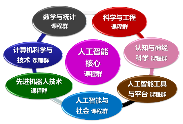 依据学生的知识、素质和能力形成的规律,人工智能专业注重跨领域学科交叉融合,强调理论知识的广度与深度的融合,培养学生具有跨学科、强基础的复合型知识创新能力。在课程群设置坚持“四个面向”,强调科学、技术、工程学科交叉,相辅相成,专业课程设置了人工智能核心、数学与统计、科学与工程、计算机科学与技术、认知与神经科学、先进机器人技术、人工智能与社会、人工智能工具与平台等八大课程群和专业综合性实验群。通过讲授基本知识锻炼学习能力与思维方法,并让学生拥有自主学习和创造知识的空间。