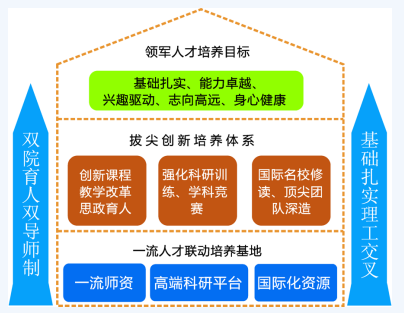 试验班以“教学特区”的方式进行管理,体现因材施教。基于“学院+书院”双院制,实施灵活管理政策,突破常规模式。学生管理实行导师制与班级管理相结合,一对二配备指导教师:学业导师指导学生学习规划和志趣培养;科研导师带领学生进入前沿课题研究。与MIT、UC Berkley等14所国际名校签订联合培养学生协议,遴选、资助学生前往国外进行为期一学期至一学年的学分互认课程学习,参与科研合作交流。