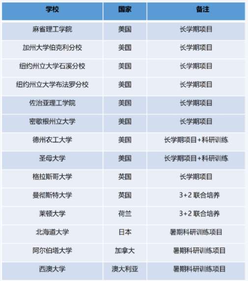 A:试验班与国外10余所著名大学签订人才联合培养协议。在大二下学期初将通过专家面试,综合学习、科研、品行、心理多方面考察,遴选学生赴国外进行长学期交流项目或短期科研训练项目。进行长学期交流的学生,在外期间可以选修交流学校相应专业课,通过考核获得学分后,回国兑换物试专业学分;鼓励学生在外期间加入国外导师课题组进行科研。学院将对交流学生提供包括往返机票、生活补助、奖学金的经济资助,具体资助办法以学院相关文件为准。
