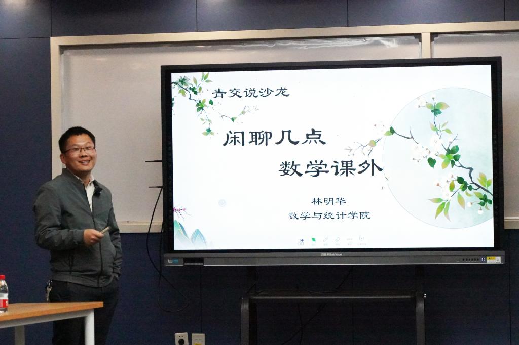 5月17日晚,由学生处和钱学森书院联合开展的“青交说”名师沙龙活动在仲英楼B917举行。西安交大数学与统计学院、20级数学试验班班主任林明华副教授做“闲聊几点数学课外”主题分享。