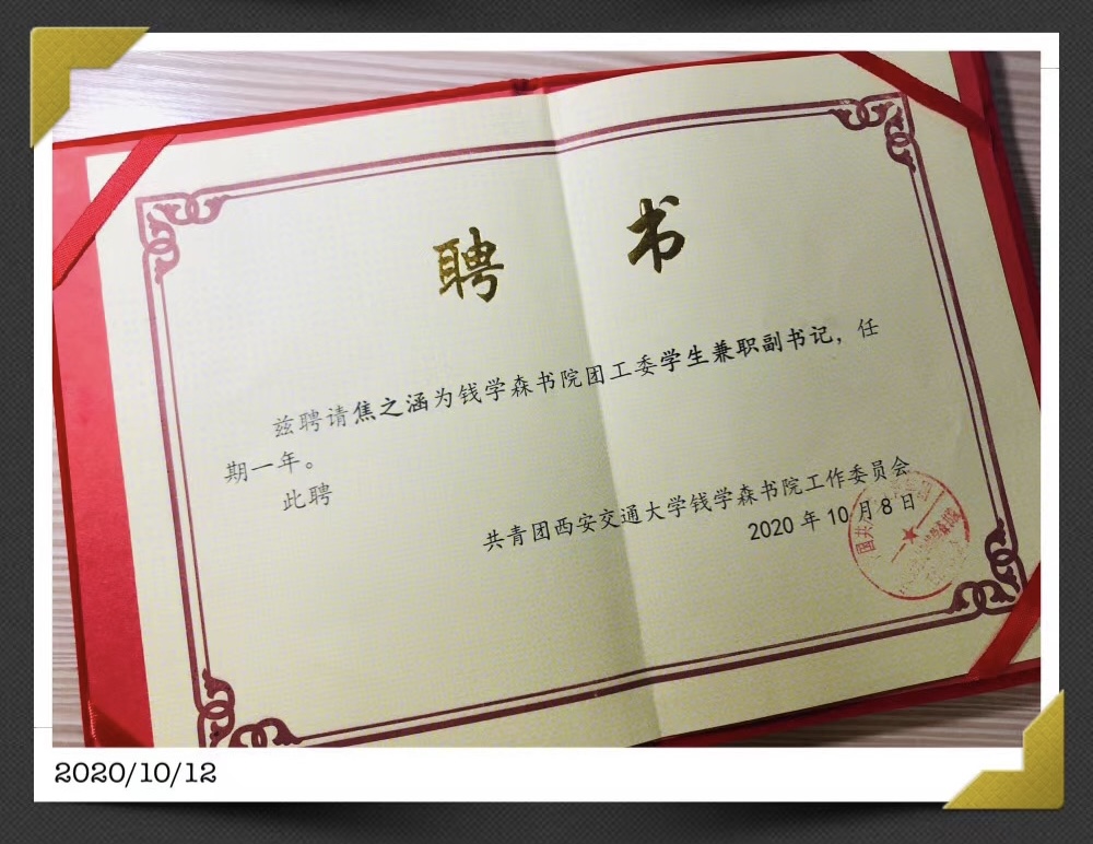 2020-2021学年,我担任了钱学森书院团工委学生副书记。我在新学年团支书会议上说:“希望大家在未来四年里,都能保持初心,保持大家当初在班级中竞选时的热情。希望大家把为班级、为团支部建设奉献自己变成习惯。希望你一直相信自己的优秀,相信自己能够在班级中发挥作用、实现价值。不忘初心,脚踏实地。”这不仅是当时的寄语,也是我为班级工作全力以赴的心声,更是我成为班长以来始终如一的践行。