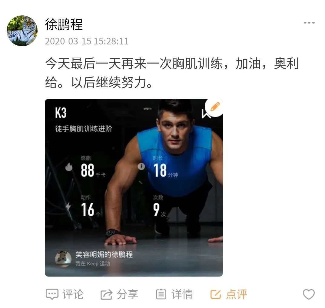 此次活动分设两种打卡方式:一是使用运动软件Keep每天完成计划,并截图使用微信小程序打卡;二是自行拍摄锻炼视频并上传。同学们或是为了保持健康,或是为了身材塑形,每天坚持不懈,按时完成打卡,锻炼内容涵盖了跑步、仰卧起坐、瘦腿练习、腹肌训练等多种锻炼方式,每天早至六七点钟就已有早起的同学们进行打卡。